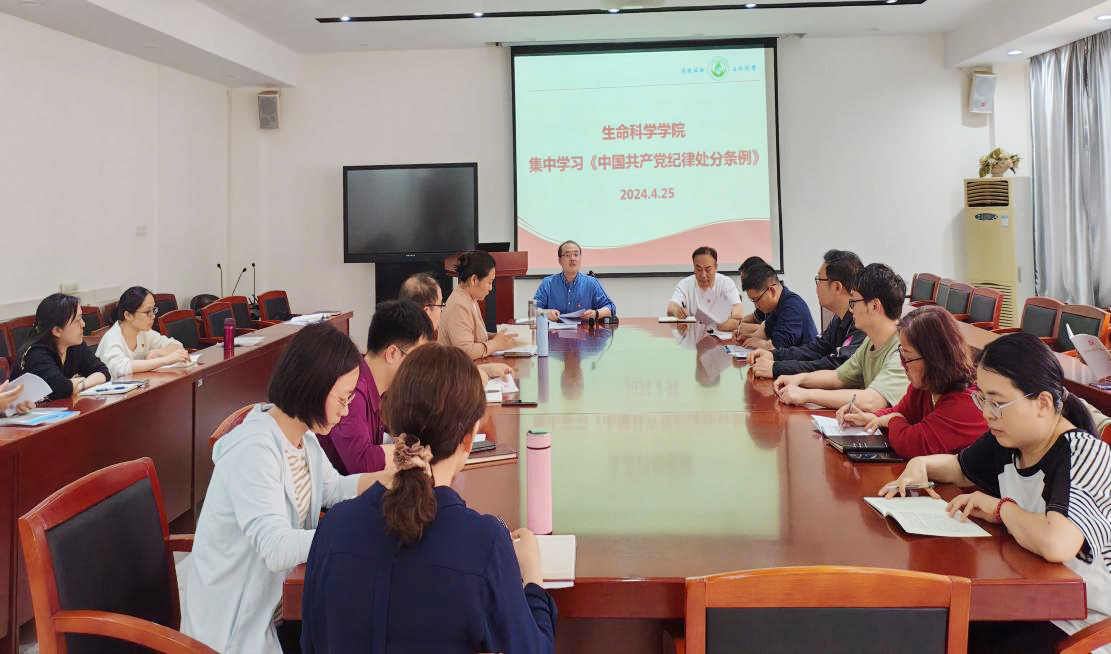 4月25日下午,生命科學(xué)學(xué)院組織開展《中國共產(chǎn)黨紀律處分條例》學(xué)習(xí)讀書班。學(xué)院黨委書記張鵬全文領(lǐng)學(xué)《中國共產(chǎn)黨紀律處分條例》,學(xué)院教工黨員集中參加讀書班學(xué)習(xí)。