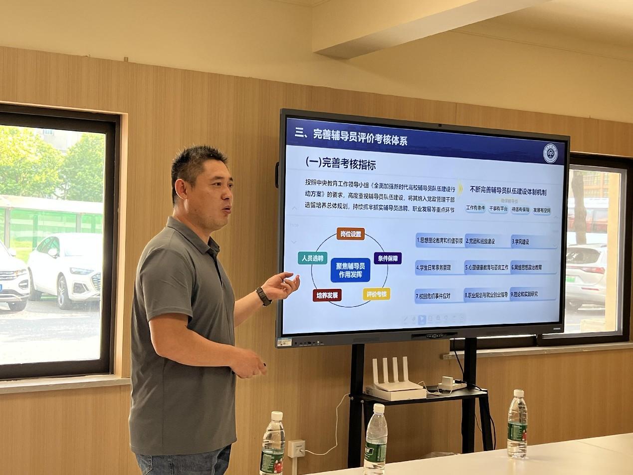 楊濤以《加強輔導員隊伍建設的思考和實踐》為題作輔導報告。他針對當前高校輔導員隊伍建設面臨的現狀和存在的問題,結合我?!耙徽臼健睂W生社區(qū)綜合管理模式改革、輔導員工作室建設等情況,從制定相關政策支持隊伍建設、健全輔導員隊伍深度聯動機制、完善輔導員評價考核體系等方面,詳細介紹了我校輔導員隊伍建設的基本情況,探討了破解“難題”的對策建議。郭洪亮表示,楊濤部長的分享理論和實踐兼具,既有理論深度又非常接地氣,干貨滿滿,受益匪淺,下一步湖北美術學院將充分借鑒兄弟高校的做法和經驗,進一步加強輔導員隊伍建設,提升輔導員專業(yè)素養(yǎng)和職業(yè)能力,推進育人工作更上臺階。