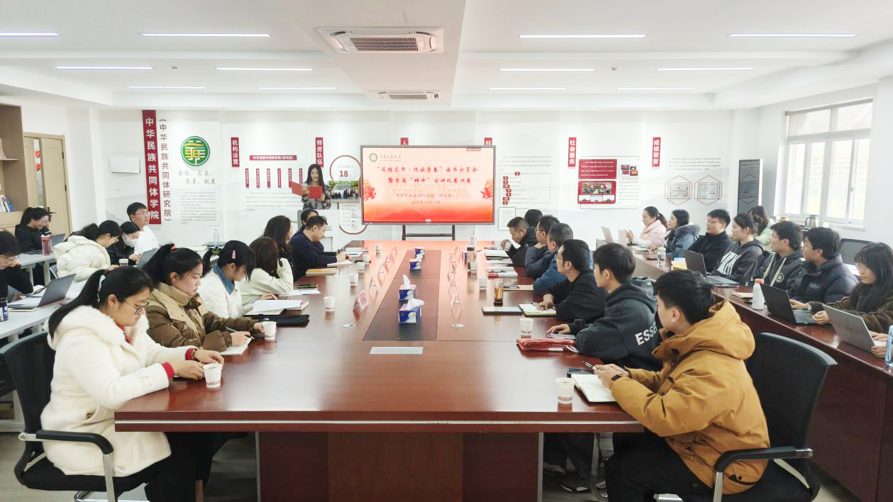 12月17日下午,中華民族共同體學院博士、碩士生黨支部以及“鑄牢中華民族共同體意識”宣講團在圖書館北書院聯合舉辦第六期“石榴花開”讀書分享會暨首屆“鑄牢”宣講比賽決賽。中華民族共同體學院班子成員、概論教研室部分教師及民族學與社會學學院、音樂舞蹈學院等師生代表共50余人參加。