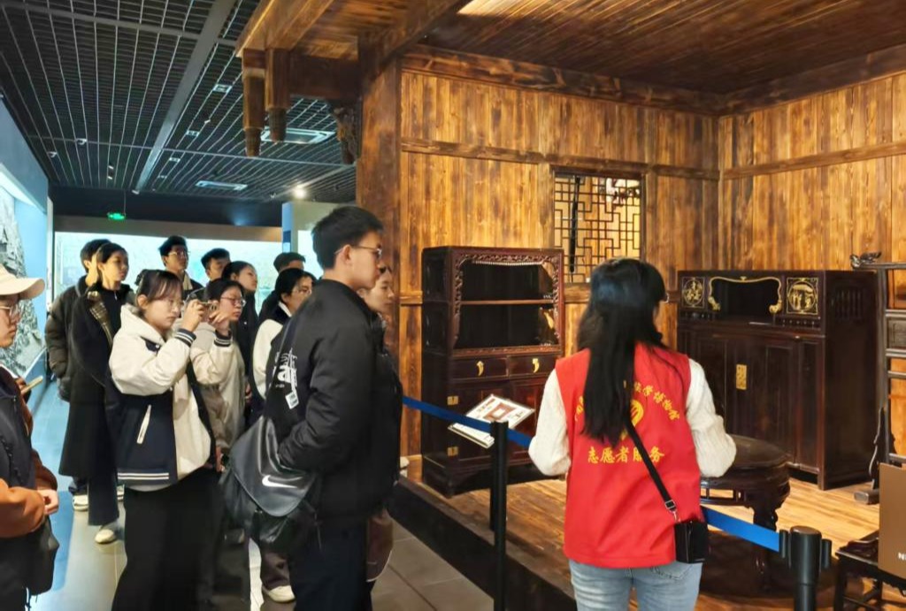 隨后,同學們參觀了民族學博物館。在講解員的帶領下,他們不僅領略了各民族獨特的文化魅力,更對鑄牢中華民族共同體意識有了更深刻的體會?!拌T牢中華民族共同體意識同樣是國防教育的一環。參觀民族學博物館讓我對各民族文化有了更深刻的了解,大大增強了我的民族認同感和自豪感?!彪娮有畔⒐こ虒W院2024級本科生覃宜寧有感而發。