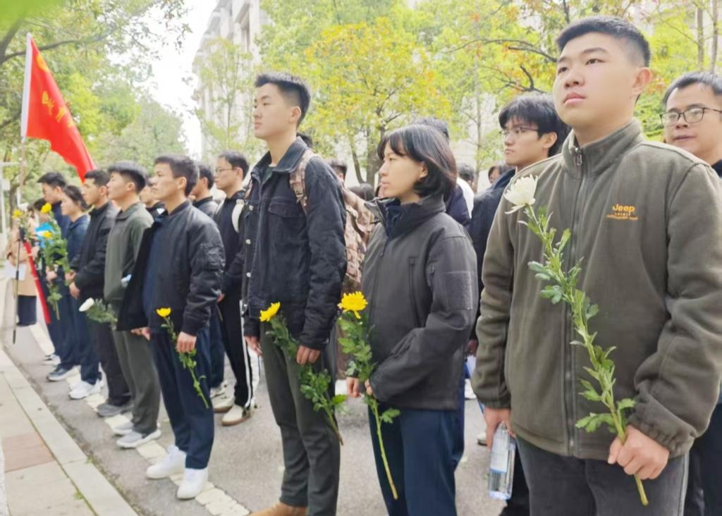 “全體脫帽,默哀!”隨著指令下達,同學們集體垂首,靜默一分鐘。默哀禮畢,同學們依次緩步上前,將手中的菊花輕放在吳澤霖老先生雕像前。數學與統計學學院2023級本科生張韻婷感慨地說:“這是我第一次送花,看著面前層層疊疊的花,內心深受感動。是前輩們的辛勤付出,才有如今的美好生活,我會更加珍惜這來之不易的幸福。”