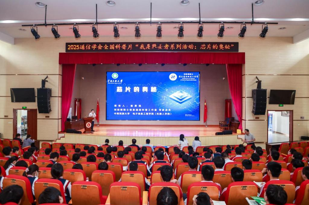 9月18日下午,由湖北省通信學(xué)會(huì)、武漢通信學(xué)會(huì)主辦,劉經(jīng)南院士信息通信科普工作室與武漢市關(guān)山中學(xué)承辦,洪山區(qū)科學(xué)技術(shù)協(xié)會(huì)協(xié)辦的2025通信學(xué)會(huì)全國(guó)科普月“我是攀登者系列活動(dòng):芯片的奧秘”科普活動(dòng)在關(guān)山中學(xué)舉行。活動(dòng)旨在通過(guò)前沿科技講座與青春實(shí)踐分享,引導(dǎo)青少年走近芯片科技、感受科普魅力、樹(shù)立科技報(bào)國(guó)之志。我校電子信息工程學(xué)院(機(jī)器人學(xué)院)副院長(zhǎng)崔勇強(qiáng)、學(xué)工辦副主任向紅擔(dān)任主講嘉賓。