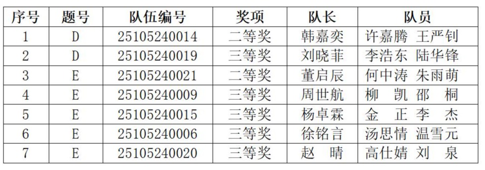 12月5日,由教育部學(xué)位管理與研究生教育司指導(dǎo)、中國學(xué)位與研究生教育學(xué)會和中國科協(xié)青少年科技中心共同主辦的“華為杯”第二十二屆中國研究生數(shù)學(xué)建模賽題交流和競賽頒獎典禮在中國礦業(yè)大學(xué)舉行。來自我校數(shù)學(xué)與統(tǒng)計學(xué)學(xué)院、管理學(xué)院、計算機(jī)學(xué)院、生物醫(yī)學(xué)工程學(xué)院、電子信息工程學(xué)院的7支隊伍獲獎。其中2支隊伍獲得全國二等獎(獲獎比例為12.66%),5支隊伍獲得全國三等獎(獲獎比例為19.82%)。此外,我校另有13支隊伍獲得成功參與獎。獲獎詳情如下: