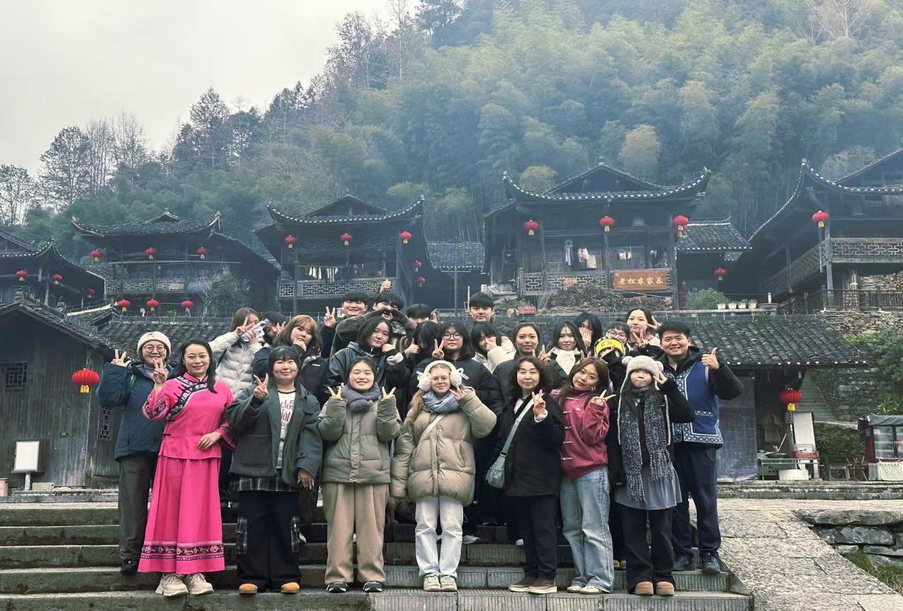 參訪恩施特色古建筑彭家寨吊腳樓群。國際合作與交流處供圖