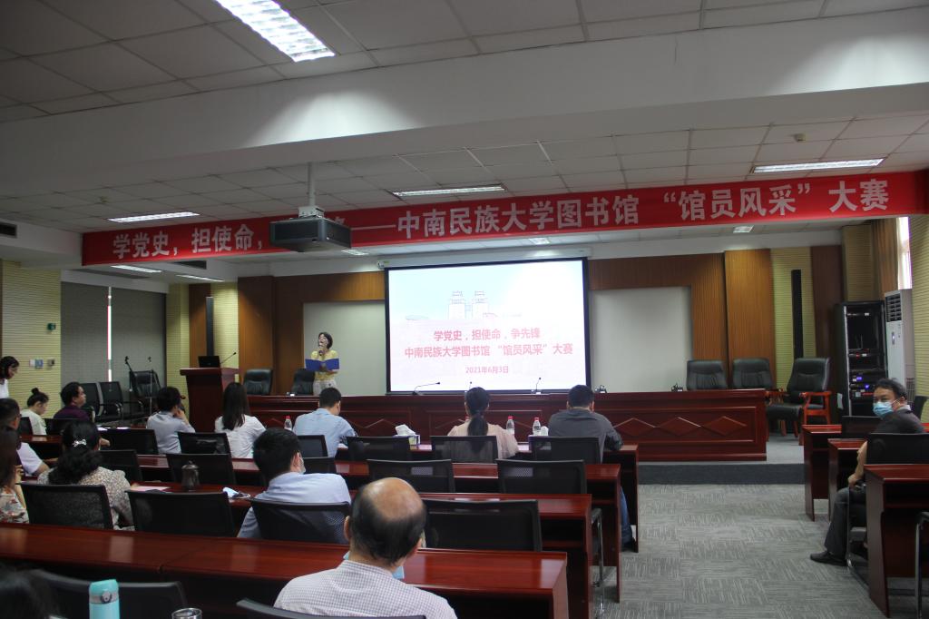 6月3日下午,由圖書館黨總支主辦、各支部協辦的圖書館首屆“館員風采大賽”在北書院舉行。湖北三新文化傳媒有限公司銷售總監郭小川、北京智聯起點信息技術有限公司大區經理李雪、武漢拓新信息技術有限公司蔣艷、武漢超星數圖教育科技有限公司王婧、北京人天書店有限公司熊彪應邀擔任評委。
