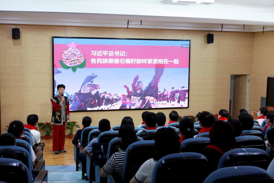 5月31日上午,由武漢市委統戰部、市民宗委,硚口區委、區政府共同主辦的武漢市民族文化進校園推進會在硚口區紅旗村小學舉行。推進會上,我校民族學博物館兩場精彩的“文化思政”進校園活動受到一致好評。