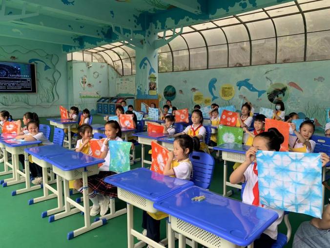 此次文化思政課堂分為室內場和室外場,分別為“同心筑夢 民族團結”思政課和“心手相承——民族扎染技藝”文化傳承課程。民族學博物館志愿講解員李曉鵬為現場的嘉賓及師生講述了我國56個民族識別與認定的過程及有代表性的民族文化。課程將鑄牢中華民族共同體意識和民族團結融入豐富多彩的民族文化知識中,通俗易懂,有獎問答環節寓教于樂,將課程推向高潮。室外的扎染實踐課堂在我校美術學院姜小淵老師的指導下,孩子們領略了“白族扎染技藝”的獨特魅力。脫漿、扎結、染色……同學們認真聽講、用心實踐,一件件花紋漂亮的扎染作品便出現在了自己手中。兩場文化思政課程將文化浸潤、科普惠民與民族團結緊密結合起來,伴隨著《五十六個民族五十六朵花》的歌聲,活動在一片歡聲笑語中落下帷幕。