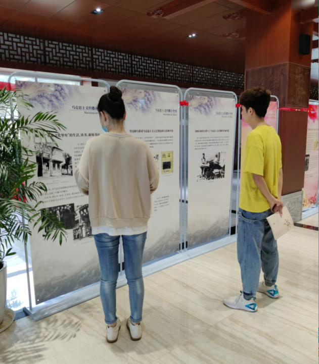 展覽以“馬克思主義傳播在中國”為主題,以歷史文獻為支撐,以編年體的形式生動形象地展現了百年來馬克思主義在中國的傳播歷程。展覽包括44幅版面,“西學東漸——近代中國馬克思主義的最初譯介”、“必由之路——十月革命促進了馬克思主義在中國的傳播”“萬象更新——建黨后馬克思主義著作的翻譯、出版和傳播” “劈波斬浪——白色恐怖下傳播真理的壯麗詩篇”“源頭活水——延安時期開啟馬克思主義中國化的新時代”“理論飛躍——新中國經典著作編譯工作的整體推進”六個部分依次布展,吸引眾多師生參觀學習。