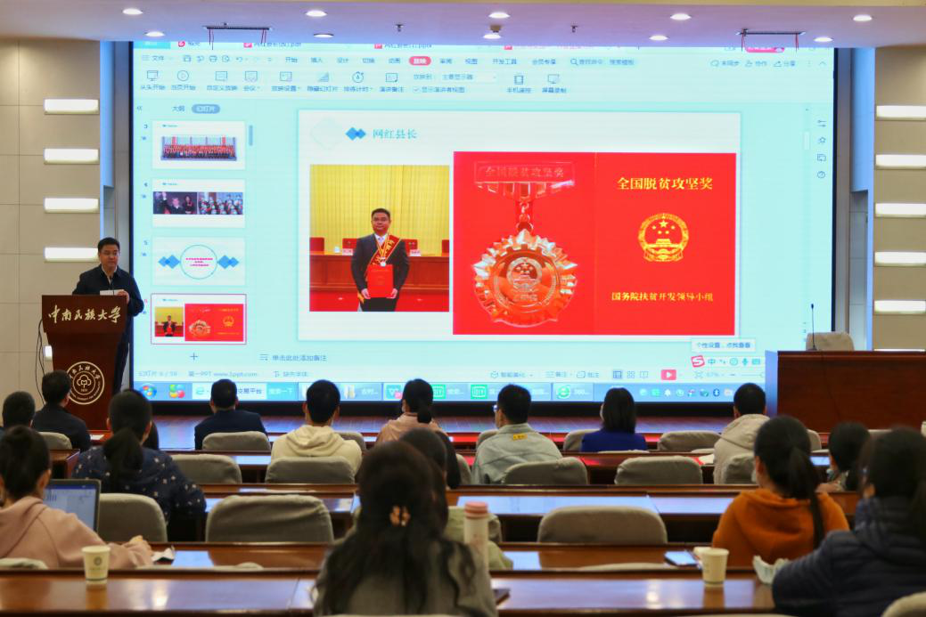 本次報告會以“把論文寫在大地上——高校扶貧干部的安化實踐”為主題,圍繞電商直播對扶貧工作的意義、安化黑茶的推廣取得的豐碩成果和寶貴經驗進行分享。陳燦平指出,電商扶貧不僅擴大了貧困地區新增消費需求,助力當地的經濟發展,促進了貧困戶增收,還打開了貧困地區與現代文明的直接通道,改變了傳統觀念,讓農民通過一臺電腦和一部手機就能實現自主創業。他希望高校師生扶貧要將思考轉移到農村大地,將以人民為中心作為踐行標準,將忠誠、干凈、擔當作為不變初心,將專業知識與社會服務結合起來應用于實踐,以新方式、新擔當、新作為,勇于開創民族地區鄉村振興新局面。