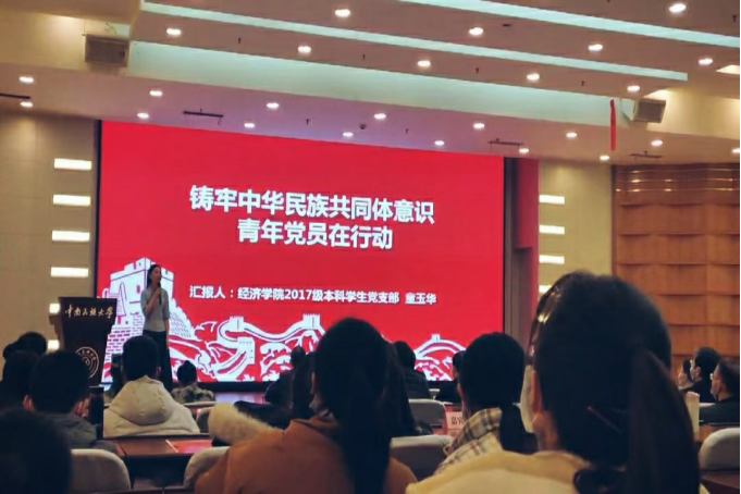 為鑄牢中華民族共同體意識,強化理論基礎,學院通過黨校、主題黨日、團校、學生骨干培養訓練營、主題團會和邊疆學生研討交流會系統開展理論學習,發揮學生黨支部的模范引領作用,結合弘揚偉大抗疫精神開展“守望相助”主題教育。學院2017級本科生黨支部開展“學爭做鑄牢中華民族共同體意識的參與者、實踐者和推動者”的主題黨日活動得到列席的上級調研組和校領導的高度評價,黨支部參加學校首屆學生黨支部風采大賽生動展現了青年黨員鑄牢中華民族共同體意識、擔當民族復興大任的精神風貌,獲得一等獎。