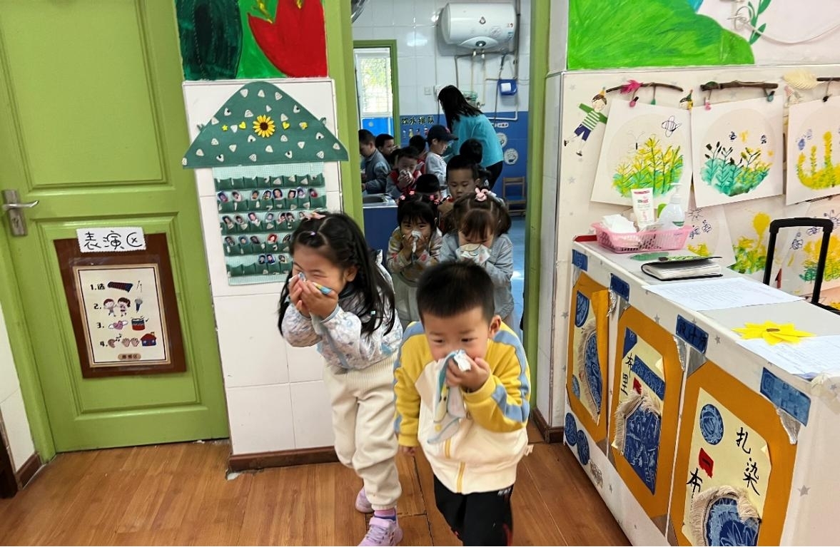 教室里,孩子們一個接一個拿著毛巾到水池打濕,用濕毛巾捂著口鼻,秩序井然地從教室分別向3個操場疏散。4月21日上午,附屬幼兒園與保衛(wèi)處聯(lián)合開展全園師生消防疏散演練。這是幼兒園國家安全教育系列活動的重要內(nèi)容。