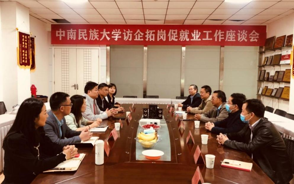 座談會上,宋旅黃對楊勝才一行表示歡迎,詳細介紹了企業的發展歷程、核心理念、主營業務以及未來發展規劃,希望以此次活動為契機,與中南民族大學在人才培養、文化事業發展、科技研發等方面進一步加大合作力度、拓寬合作渠道、創新合作方式,共同探索校企合作新路徑,聯合培養德才兼備的創新型人才。