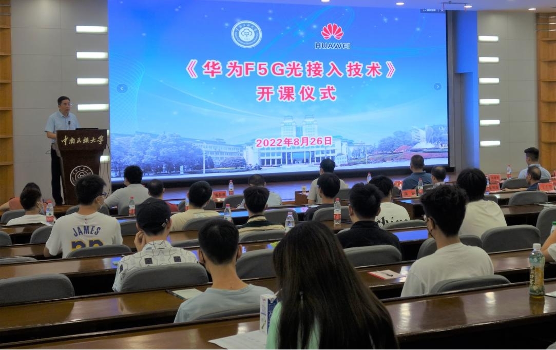 8月26日上午,我校電信學院與華為公司聯合開設的《華為F5G光接入技術》課程在學術交流中心正式開課。該課程是“華為創新班”人才培養體系中校企聯合課程之一。華為湖北武漢教育行業經理郭建華、華為湖北政企業務部教育商業經理史琳波及華為生態鏈相關代表,學校教務處副處長李立、電信學院領導班子以及相關教師、“華為創新班”學員參加了開課儀式。開課儀式由電信學院院長楊春勇主持。