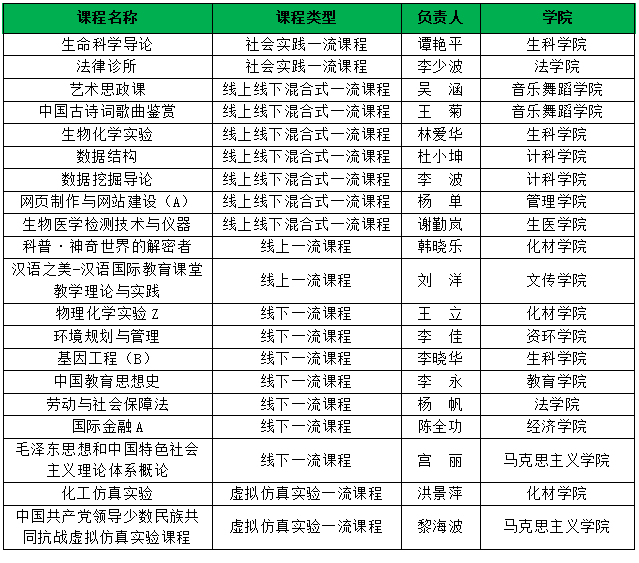 我校此次入選省級一流本科課程如下: