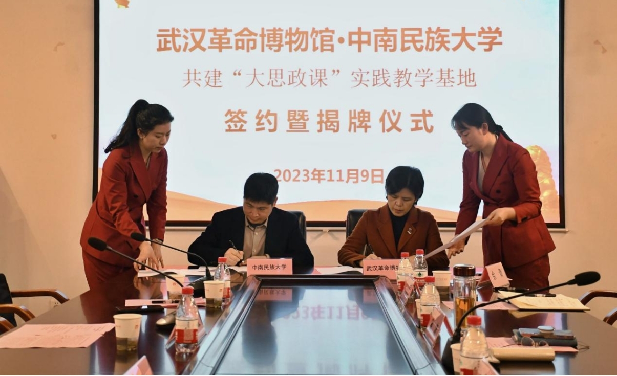 為全面落實教育部等十部門關于《〈全面推進“大思政課”建設的工作方案〉的通知》精神,加快構建我校“大思政課”育人格局,推進“大思政課”教育走深走實,11月9日,我校與武漢革命博物館共建“大思政課”實踐教學基地簽約暨揭牌儀式在中共五大會址紀念館舉行。武漢革命博物館黨委書記、館長曹波,我校馬克思主義學院院長黎海波,教務處副處長陳曉希,以及師生代表參加儀式。