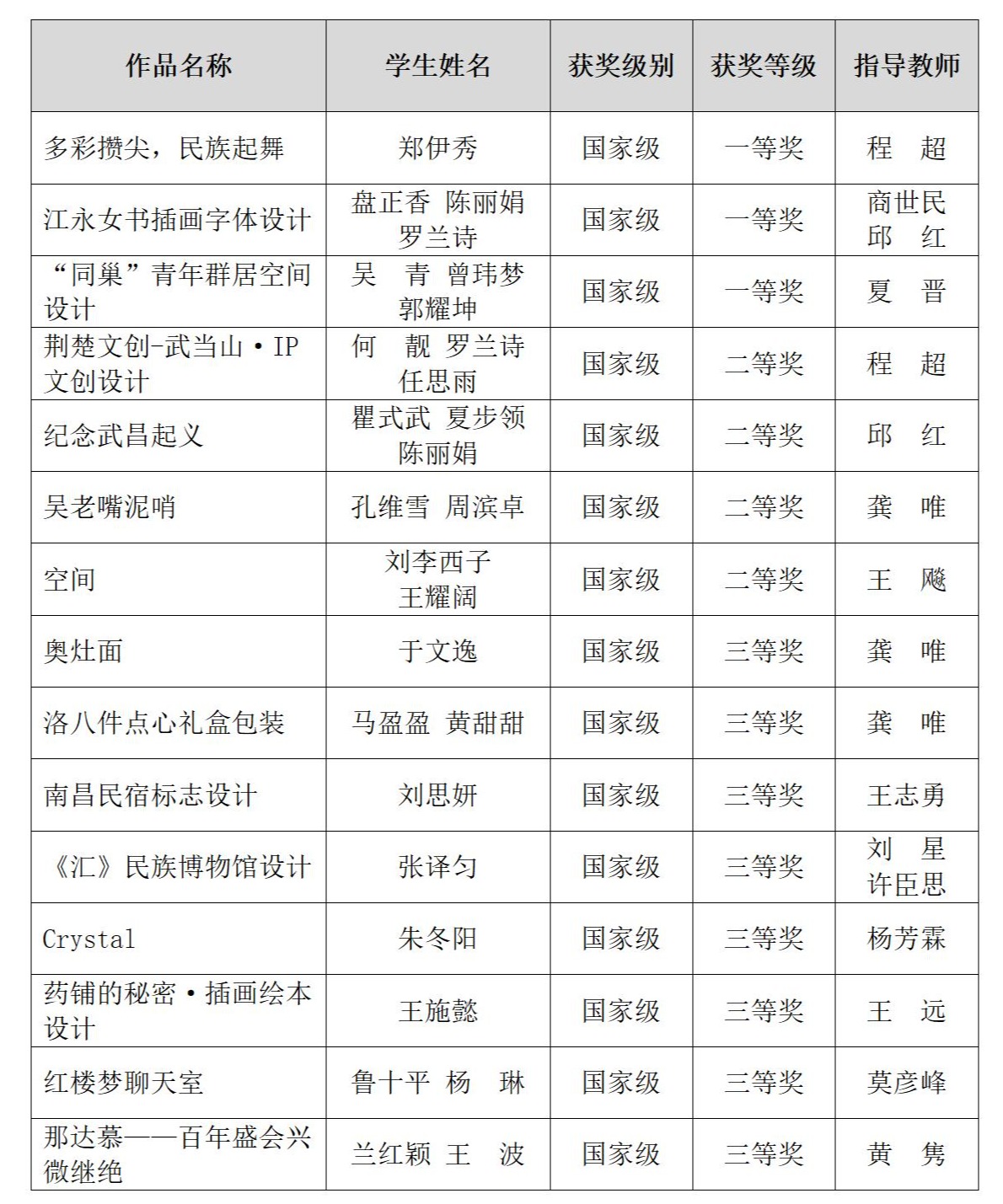 本屆大賽中,程超、商世民、夏晉、邱紅、龔唯、劉星等6位指導教師獲得優秀指導教師稱號。在省賽環節,美術學院學子有近50件作品獲獎,其中一等獎11項、二等獎18項、三等獎20項。
