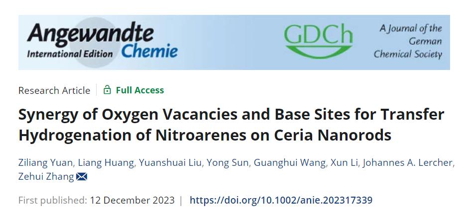 近日,化學(xué)與材料科學(xué)學(xué)院張澤會教授課題組在生物質(zhì)乙醇?xì)滢D(zhuǎn)移選擇性還原硝基化合物方面取得重要研究進(jìn)展。12月12日,該研究成果以“Synergy of Oxygen Vacancies and Base Sites for Transfer Hydrogenation of Nitroarenes on Ceria Nanorods”為題在化學(xué)類國際頂級期刊Angewandte Chemie International Edition上發(fā)表(原文鏈接:https://doi.org/10.1002/anie.202317339)。