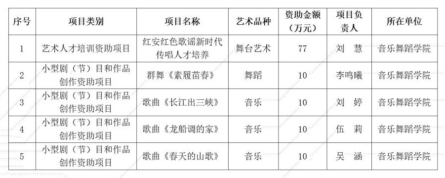 3月14日,國家藝術基金管理中心公布了國家藝術基金2024年資助項目立項名單。我校喜獲5項國家藝術基金項目,其中藝術人才培訓資助項目1項,小型劇(節)目和作品創作資助項目4項,在委屬高校和湖北省內高校中名列前茅,創歷史最好成績。