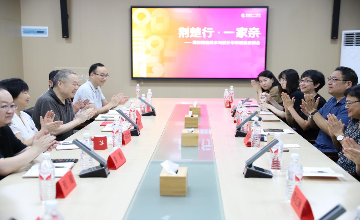 為豐富海峽兩岸文化交流互鑒,促進兩岸藝術實踐與學科建設共同發展,7月2日下午,借“荊楚行·一家親——中華民族文化研習營”活動在我校開幕的機會,美術學院全體班子成員及教師代表,同臺灣東華大學藝術學院廖慶華、林麗珊、黃琡雅3位教授在學院會議室召開兩岸高校美術與設計學科建設座談會。座談會由院長吳海廣主持。