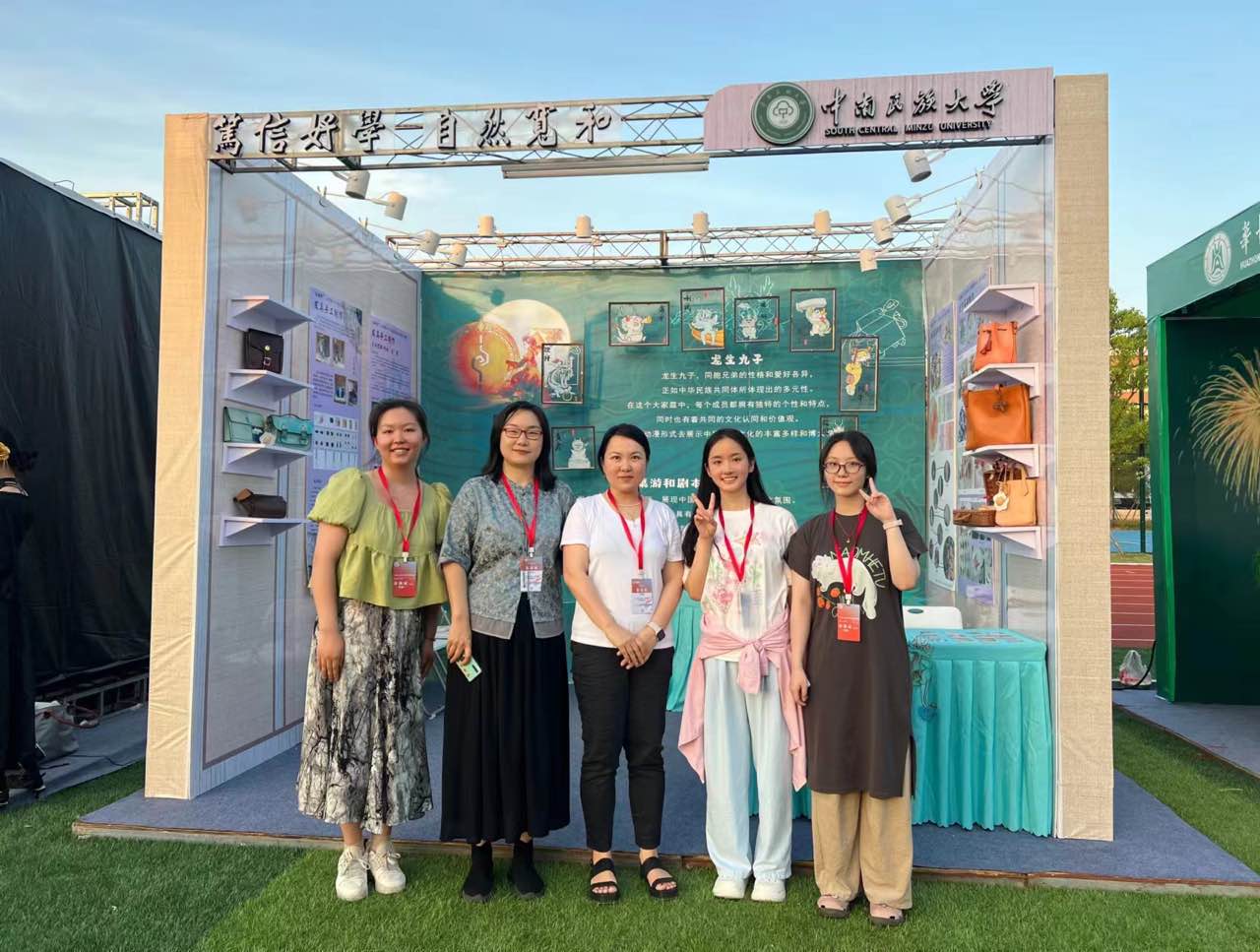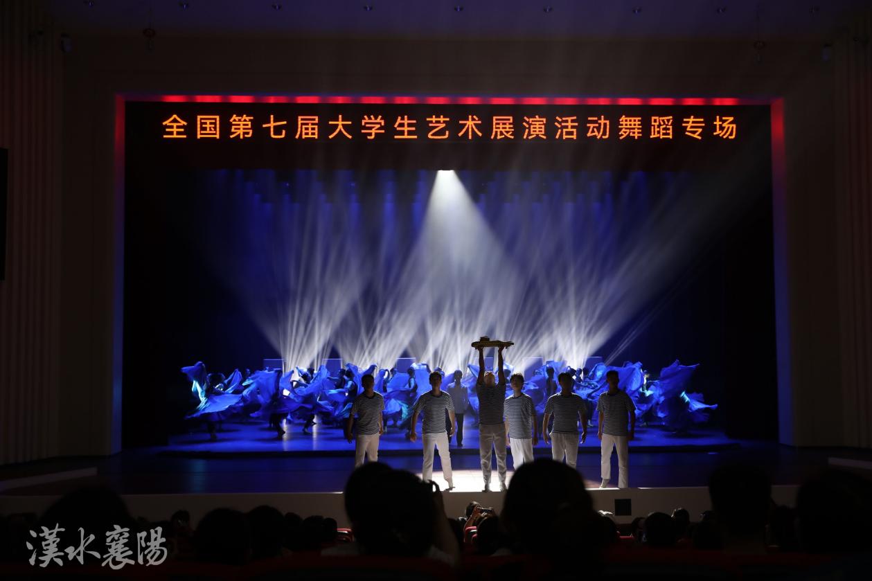 本屆大學(xué)生藝術(shù)節(jié)現(xiàn)場展演由教育部和湖北省人民政府共同主辦,湖北省教育廳和襄陽市人民政府共同承辦。我校師生除了備戰(zhàn)展演的參賽作品外,音樂舞蹈學(xué)院48名學(xué)生代表湖北省參加了全國第七屆大學(xué)生藝術(shù)展演開幕式,承擔(dān)第一篇章《信念天空》演出任務(wù),其中7名學(xué)生代表湖北省參加開幕式入場式環(huán)節(jié)。我校團(tuán)隊(duì)是代表湖北省參加開幕式的唯一一支隊(duì)伍。音樂舞蹈學(xué)院李鳴曦老師受邀擔(dān)任全國第七屆大學(xué)生藝術(shù)展演開閉幕式總導(dǎo)演。音樂舞蹈學(xué)院舞蹈系楊昭、李柔同學(xué)受邀擔(dān)任展演開閉幕式導(dǎo)演。大學(xué)生藝術(shù)團(tuán)天樂合唱團(tuán)代表湖北省參加聲樂組展演深受好評,受邀參觀襄陽市圖書館,為志愿者即興表演了快閃合唱。美術(shù)學(xué)院丁穎、徐敏老師和3名學(xué)生代表學(xué)校參加展演活動“你好!大藝村”藝術(shù)創(chuàng)意作品展覽會,現(xiàn)場展示了“石榴籽”非遺國風(fēng)手工設(shè)計(jì)工作坊和“繪生肖”創(chuàng)意開發(fā)團(tuán)隊(duì)的相關(guān)作品。