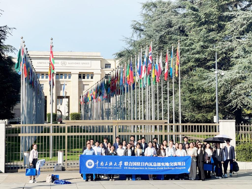 我校師生在萬國宮前合影。 公共管理學院供圖