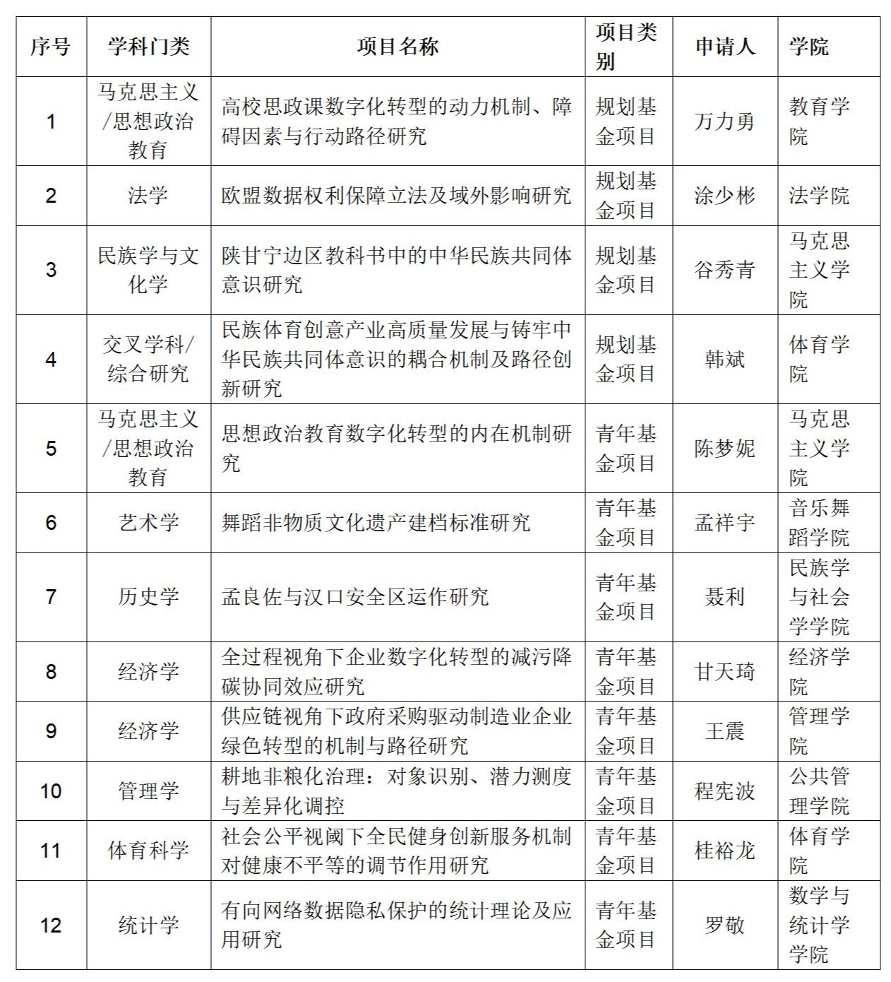 據(jù)悉,此次全國(guó)共評(píng)選出國(guó)家社科基金重點(diǎn)項(xiàng)目392項(xiàng)、一般項(xiàng)目2757項(xiàng)、青年項(xiàng)目1989項(xiàng)、西部項(xiàng)目495項(xiàng)。教育部人文社會(huì)科學(xué)研究一般項(xiàng)目全國(guó)共評(píng)選出規(guī)劃基金、青年基金和自籌經(jīng)費(fèi)項(xiàng)目3378項(xiàng)。