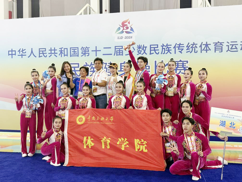 11月22日至30日,由國(guó)家民委和國(guó)家體育總局主辦、海南省人民政府承辦的中華人民共和國(guó)第十二屆少數(shù)民族傳統(tǒng)體育運(yùn)動(dòng)會(huì)于海南省三亞市舉行。以我校組成的湖北省民族健身操代表隊(duì)和表演項(xiàng)目代表隊(duì)運(yùn)動(dòng)健兒以其卓越的表現(xiàn)和頑強(qiáng)拼搏的精神,取得了驕人的戰(zhàn)績(jī):民族健身操代表隊(duì)在規(guī)定套路和自選套路(輕器械)比賽分獲第八和第七名,綜合排名躍居全國(guó)第六,獲得三項(xiàng)銅獎(jiǎng),此外,表演項(xiàng)目(競(jìng)技類(lèi))“旱船競(jìng)速”獲得三等獎(jiǎng),獲獎(jiǎng)數(shù)量創(chuàng)歷史新高。