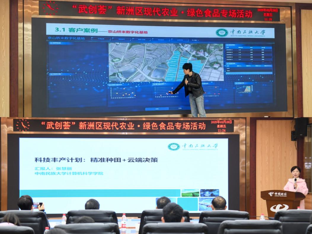 為進一步與產業端深度耦合,助力現代農業數字化轉型,3月28日,我校計算機科學學院莫海芳、張慧麗2位教師在“武創薈”新洲區現代農業·綠色食品專場活動中進行“AI+農業”主題技術路演,展示了我校數字農業科研創新成果。