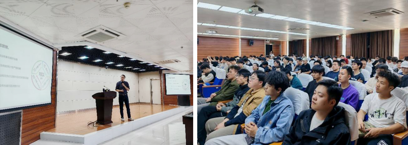 第二次講座承接首期項目管理基礎理論課程,以《研發效能躍遷:電信項目管理與實踐》為題,邀請企業資深技術與管理專家方紅斌高級工程師主講,重點聚焦企業實戰經驗分享。方紅斌深入解析了《人月神話》對現代研發的戰略價值,系統講解了項目管理理論在實踐中的轉化應用。作為核心內容,華為IPD實戰案例的分享引發了現場師生的濃厚興趣。在實踐環節,方紅斌詳細講解了WBS、甘特圖等實用工具,并通過現場演示生動展現了項目管理方法在日常工作中的具體應用?;迎h節中,學生們圍繞創業規劃、項目經理職業發展等熱點問題與主講人展開深入交流。