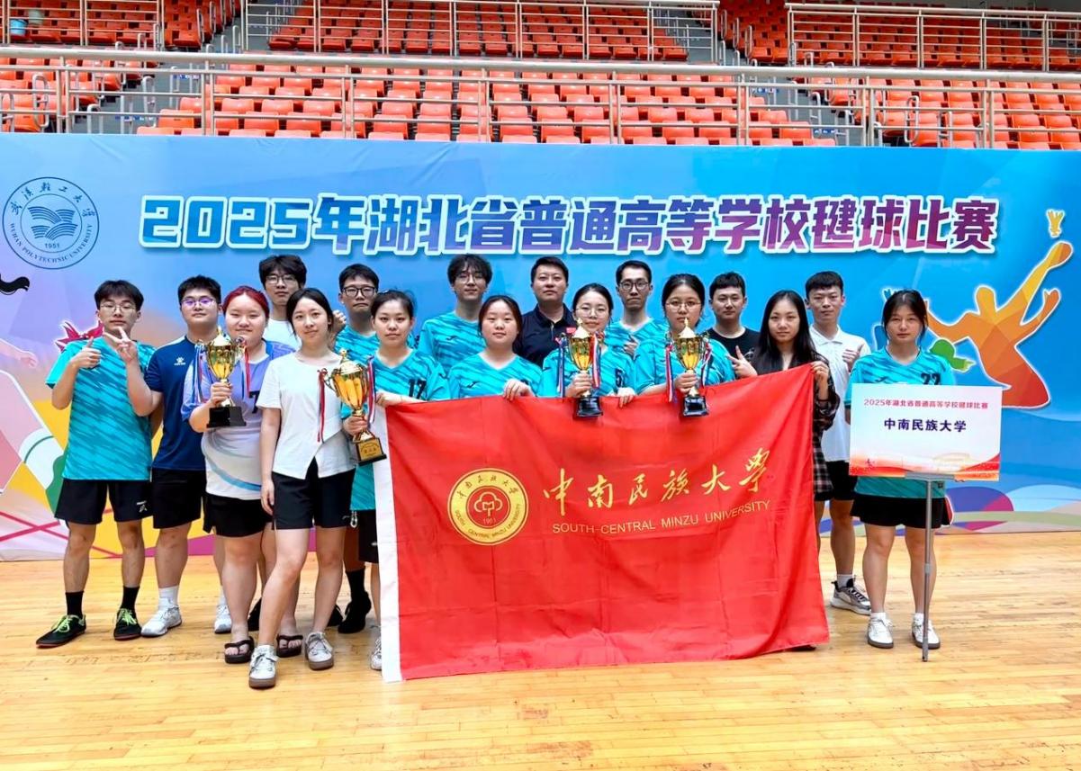 6月7日至8日,2025年湖北省普通高等學(xué)校毽球比賽在武漢輕工大學(xué)舉行。我校毽球隊取得了男子雙人賽第一名、女子單人賽第一名、女子三人賽第二名、男子單人賽第二名、女子雙人賽第三名、男子三人賽第五名和男女混合雙人賽第六名的好成績。