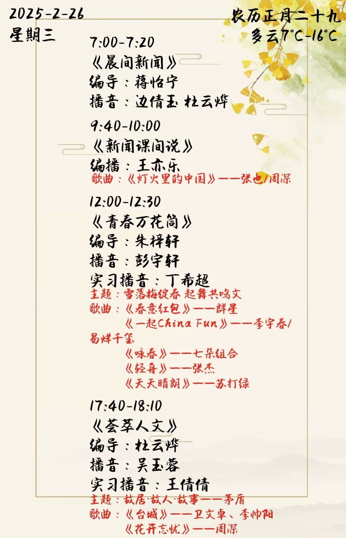 上一篇: 雙塔之聲2025年第一學(xué)期第2周節(jié)目單(2025.3.3-3.7)