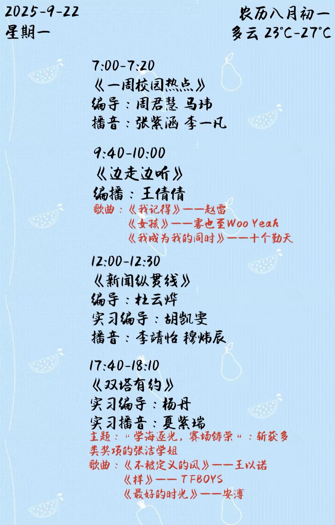 下一篇: 雙塔之聲2025年第二學(xué)期第2周節(jié)目單(2025.9.15-9.19)