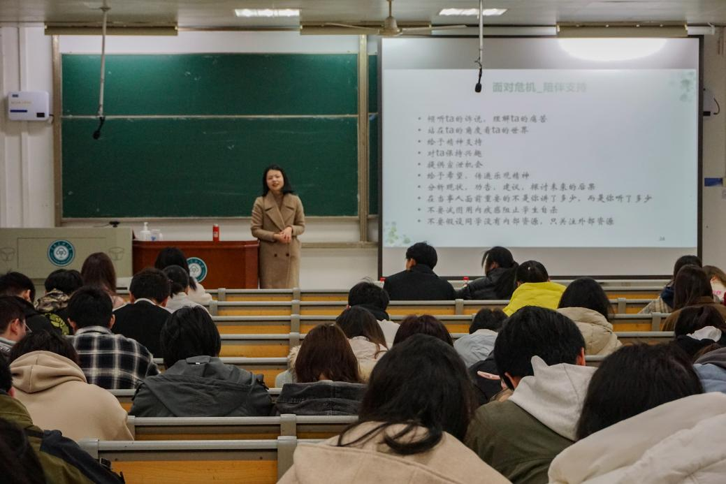 為加強大學生心理健康教育,幫助同學們認識到心理危機干預的意義和重要性,3月19日上午,經濟學院在15號教學樓舉辦了心理危機干預講座。本次講座特邀武漢大學大學生心理健康教育中心副主任、注冊心理師、武漢團體專委會委員章吉擔任主講人,經濟學院2021級和2022級心理委員及寢室長參加了學習。