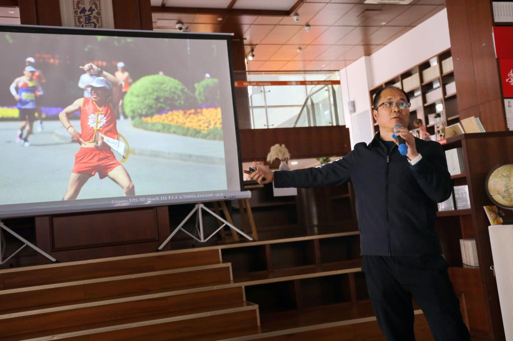 此外,潘元金老師還介紹了如何根據不同的拍攝對象和環境選擇合適的拍攝手法,重點講解了長焦鏡頭捕捉表情和追隨拍攝手法,如慢門、旋轉拍攝和高速頻閃等方法在拍攝動感照片時的重要性。潘元金老師展示了原創作品《武漢馬拉松中的“好漢歸來”》,該作品選擇了具有代表性的參賽者為主體,運用追隨拍攝手法,展現運動員獨特的拼搏精神。