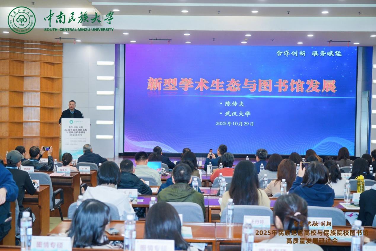 10月29日至30日,由國家民委直屬6所高校圖書館共同主辦,我校圖書館承辦的“智慧·共融·創新”2025年民族地區高校與民族院校圖書館高質量發展研討會在學術交流中心召開。來自全國30余所民族地區高校、民族院校的百余名圖書館負責人和專家學者齊聚一堂,共繪民族高校圖書館高質量發展藍圖。我校黨委常委、副校長馬玉堂出席研討會開幕式并致辭。