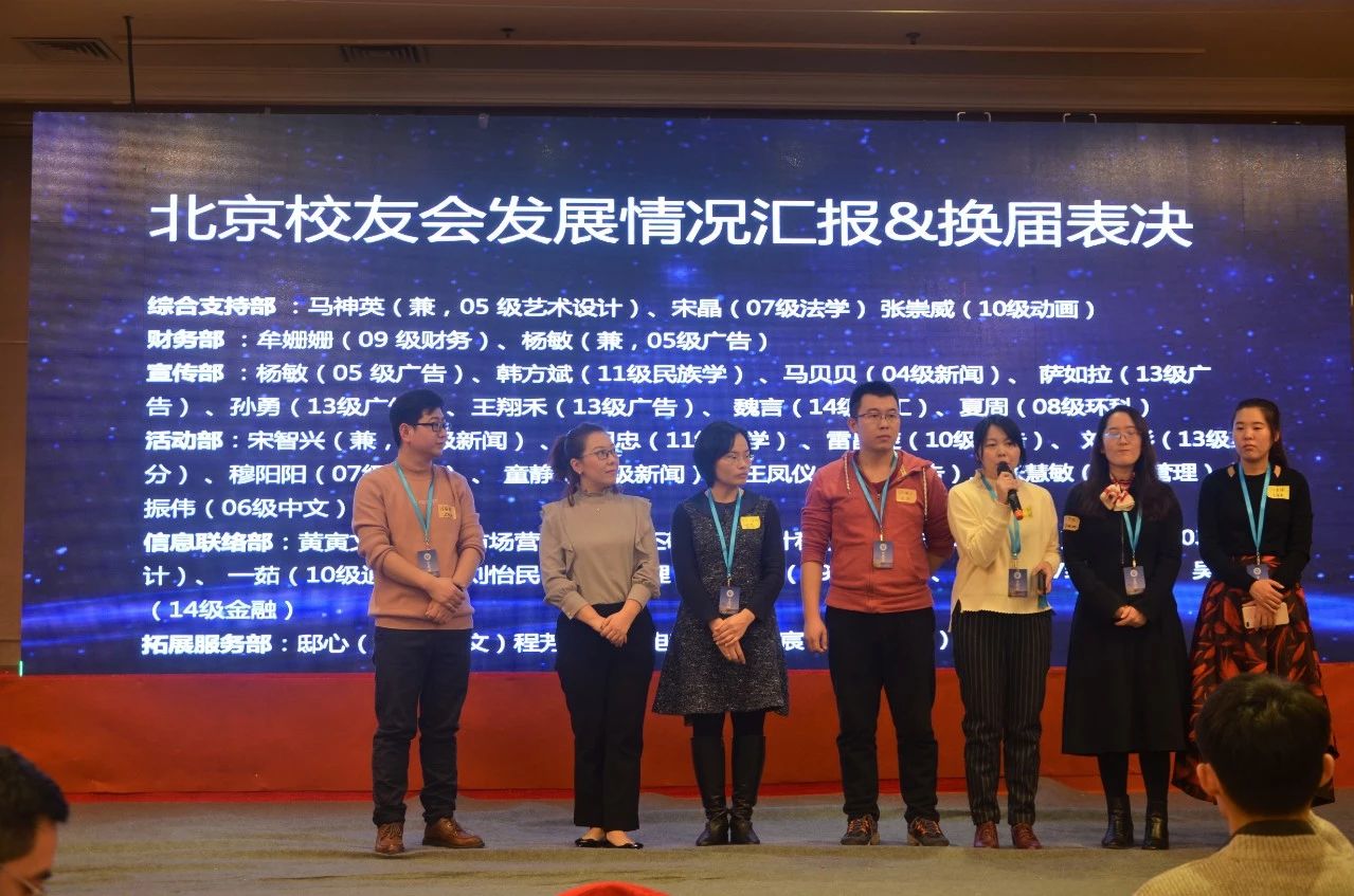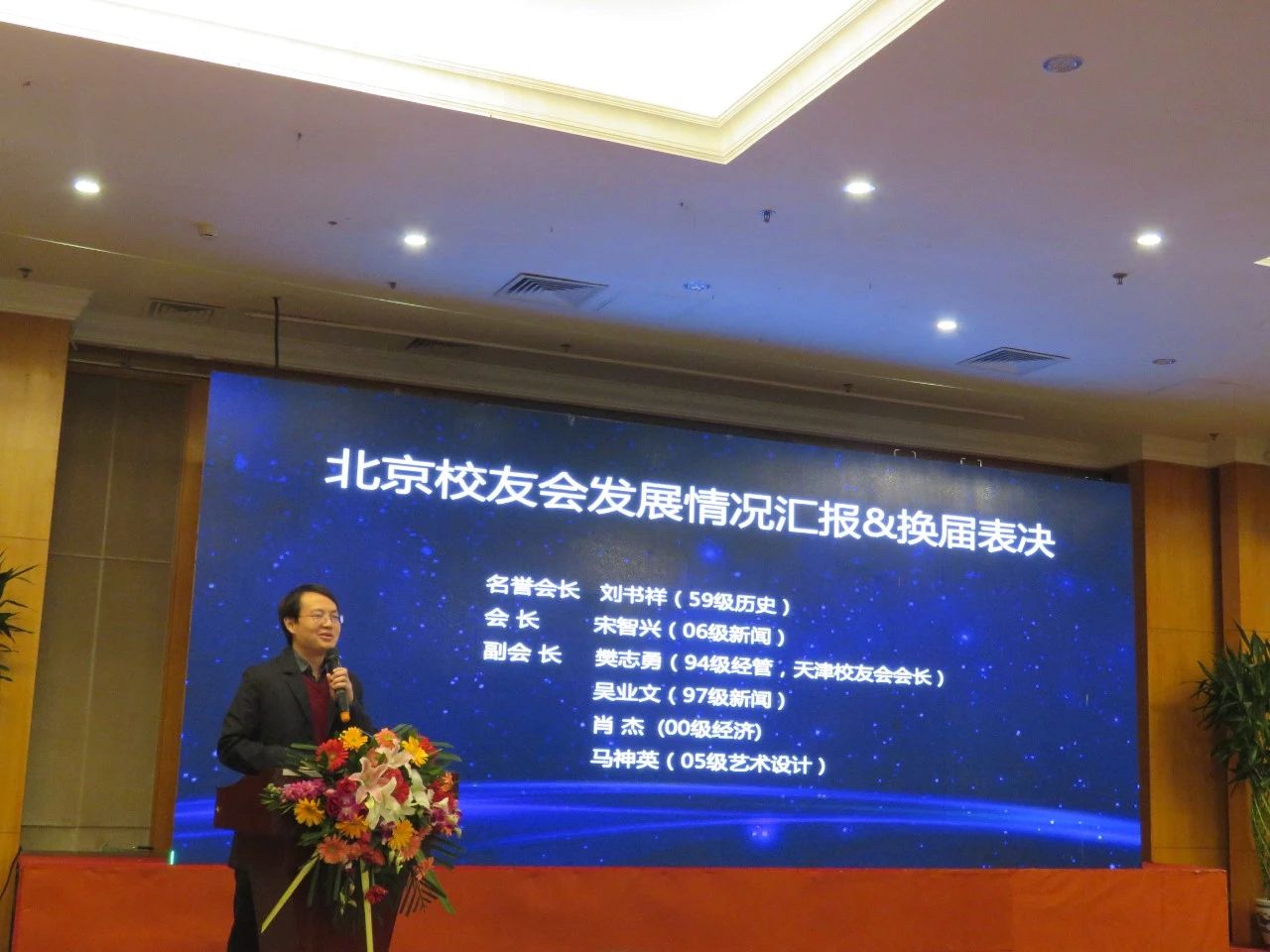 新一屆校友會機(jī)構(gòu)聘請了黃鳳祥(61級歷史)、戴小明(83級政法)、計(jì)世蘭(84級中文)、廖鋒(95級化學(xué))、周人杰(96級法學(xué))、王海(97級新聞)、陳薪玲(00級計(jì)科)等二十余位校友作為北京校友會榮譽(yù)顧問。 中南民族大學(xué)校友辦主任黃仕清(82級歷史)、河南校友巴庶語(82級中文)、杭州校友盛建勤(87級歷史)、天津校友會會長樊志勇、內(nèi)蒙古校友張麗娜(02級新聞)等學(xué)校老師和各地校友代表蒞臨出席。