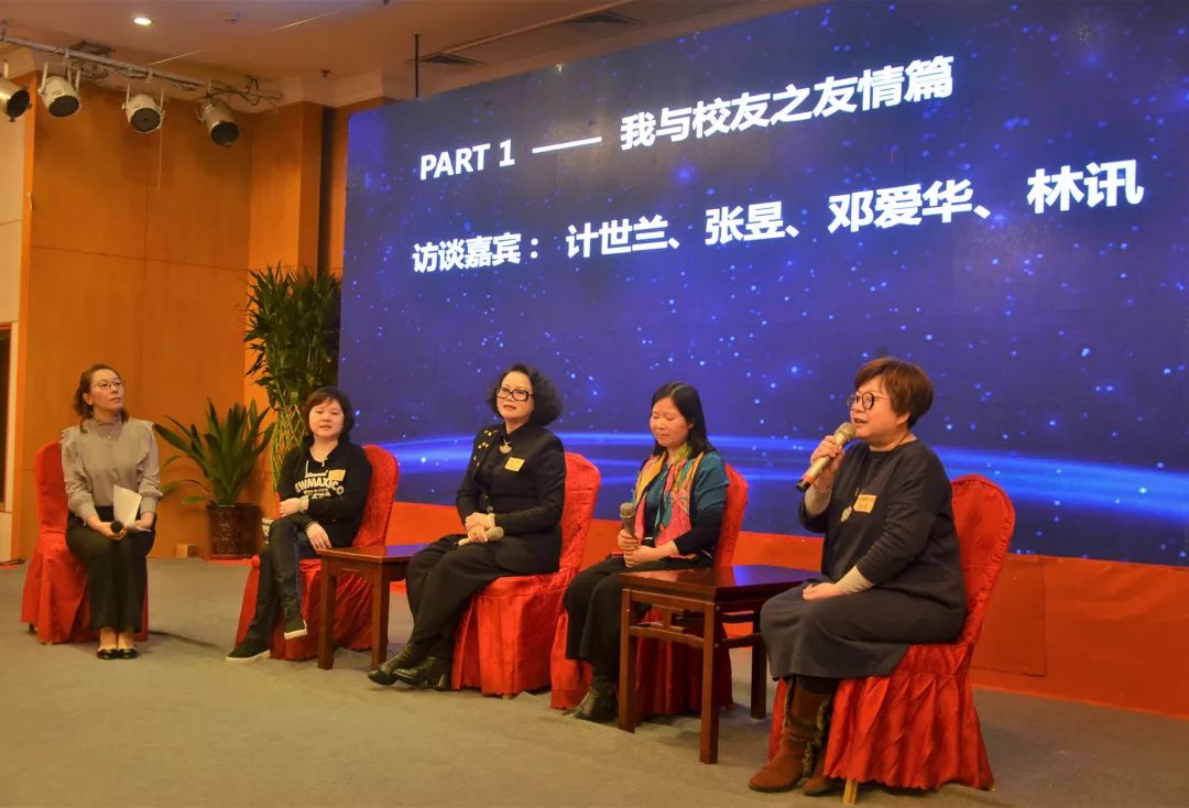 我與校友之友情篇 經(jīng)過短暫的游戲環(huán)節(jié),大會邀請了三組校友,分別以“我與校友之友情篇”為主題邀請張昱(84級中文)、計(jì)世蘭(84級中文)、鄧愛華(84級中文)、林迅(86級中文)四位校友分享了三十多年的校友姐妹情誼;以“我與校友之愛情篇”為主題邀請翁萍(06級新聞)和楊成龍(06級廣告)、張東華(08級廣電)和史德銀(11級電信)、楊敏(05級廣告)和宋智興(06級新聞)三對校友夫妻聊聊他們緣起南湖的愛情故事;以“我與校友之成長篇”為主題邀請廖鋒(95級化學(xué))、王鳳儀(13級廣告)、蘇濤濤(10級計(jì)科)三位校友也是同事講述了校友合作創(chuàng)業(yè)、聘用校友員工的校友間職業(yè)互助發(fā)展的成果。