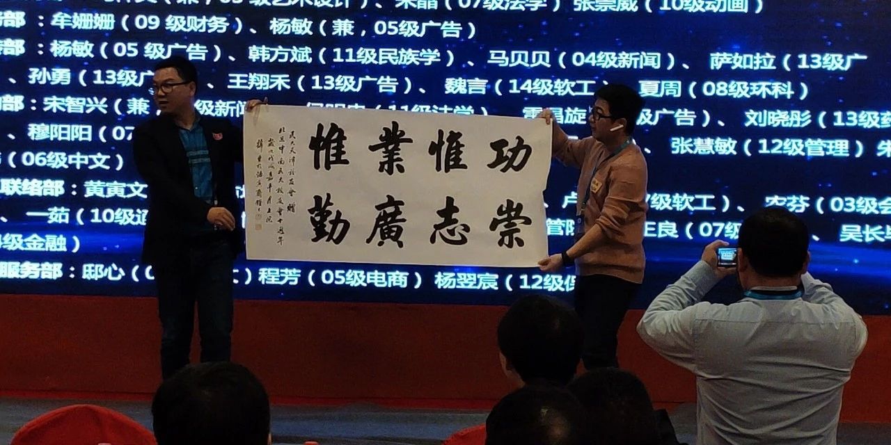 換屆結(jié)束后,天津校友會會長樊志勇代表天津校友會贈送一幅天津籍名家的“功崇惟志,業(yè)廣惟勤”墨寶,恭賀北京校友會成立十周年并取得換屆成功,寄語北京校友會發(fā)展越來越好。