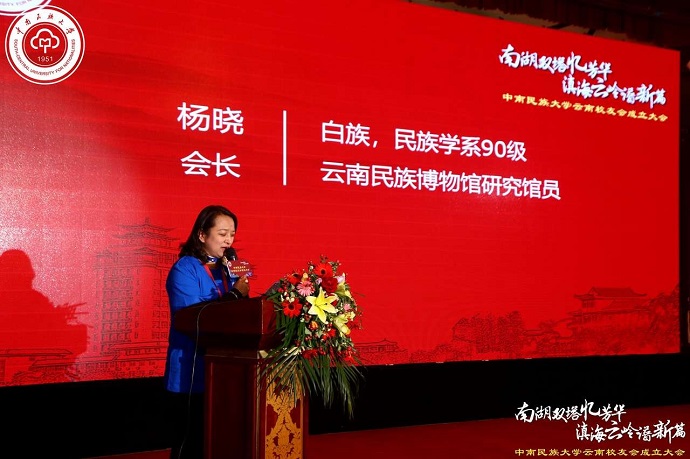 楊曉會長代表首屆云南校友會理事會發(fā)言。她表示,云南各民族校友分布于云嶺大地各州市、各行業(yè),云南校友的力量日益擴大。云南校友會的成立,將為云南校友搭建情感交流、資源共享的平臺。