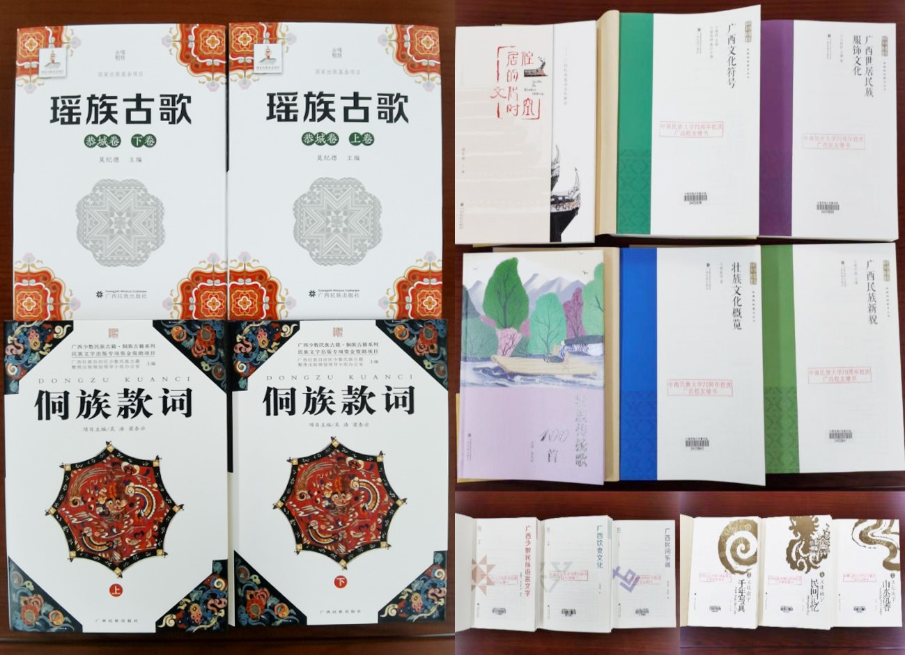 此次校友共捐贈圖書64種70冊,全部為廣西壯族自治區地方特色文獻,包括《廣西通志(雍正版)》《壯族傳統古歌集》《八桂古城》《侗族款詞》《瑤族古歌》《廣西文化符號》《廣西民族新貌》等。這批圖書涉及我國南方民族地區文化、工業、城鄉建設、人物、行政區劃、少數民族語言、民俗、民族服飾等多方面內容,包含苗族、彝族、毛南族、仫佬族、京族等多個民族的資料。這些珍貴的地方文獻豐富了我校圖書館民族文獻資源,為師生開展研究提供了助力。