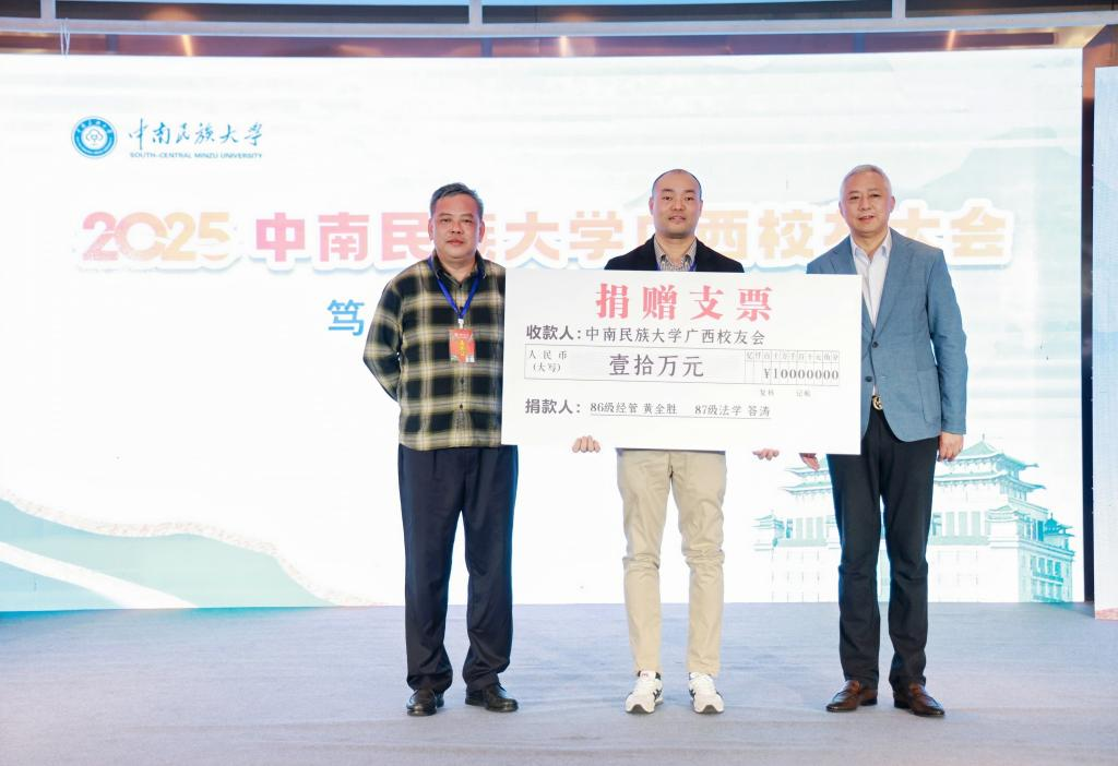 答濤、黃全勝校友向校友會捐款。 廣西校友會供圖