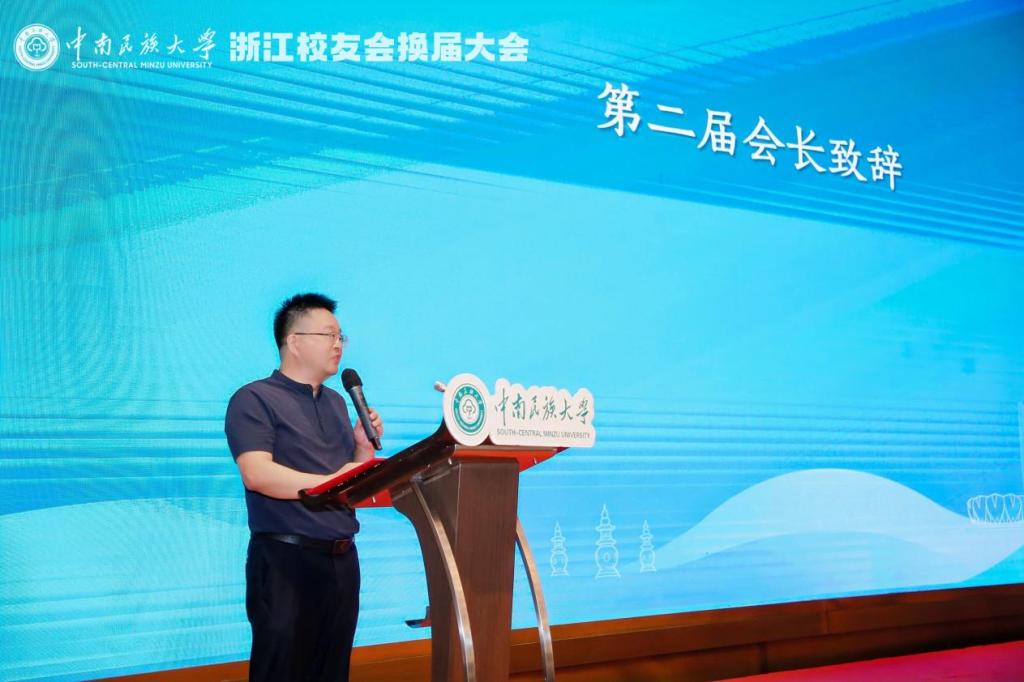 隨后,會議審議通過了校友會章程、經費管理辦法、選舉辦法等,審議通過了新一屆理事會成員名單,選舉產生了新一屆會長、監事長、常務副會長、副會長、監事及秘書長。1987級歷史專業校友盛建勤當選會長,他代表新一屆理事會發言,表示未來五年,浙江校友會將立足區位優勢與資源特色,聚焦“母校-校友”雙向賦能,計劃通過實施“之江反哺”計劃、打造“產學研用”融合平臺、建設“浙里石榴紅”家園三項行動為母校“雙一流”建設貢獻浙江力量,助力校友成長與母校發展。