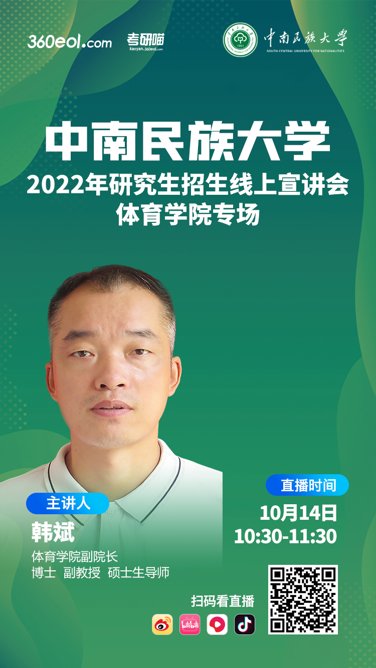 中南民族大學2022年研究生招生線上系列宣講會之九 ----體育學院專場