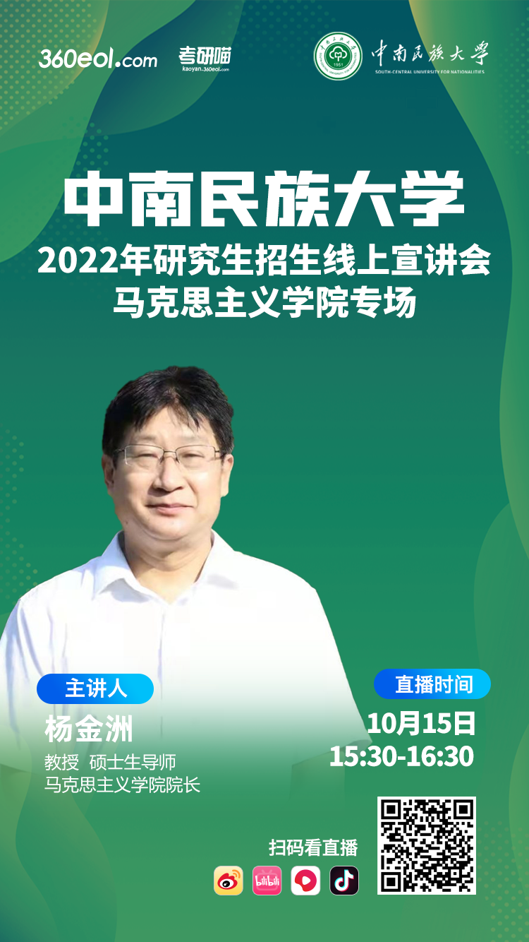 中南民族大學2022年研究生招生線上系列宣講會之十一 ----馬克思主義學院專場