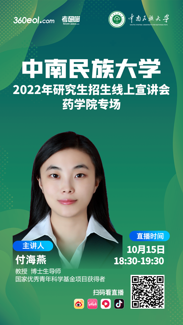 中南民族大學2022年研究生招生線上系列宣講會之十二 ----藥學院專場
