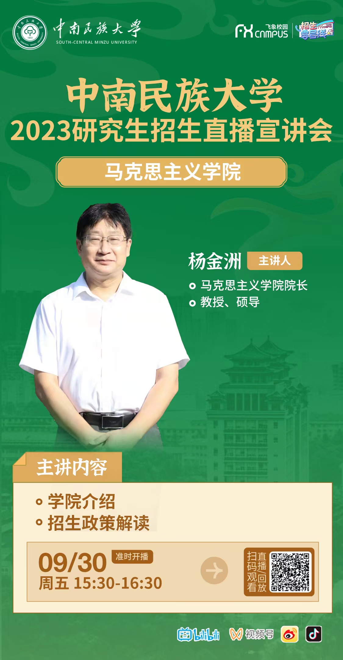 中南民族大學2023年研究生招生線上系列宣講會之十三------馬克思主義學院專場(9月30日 15:30)