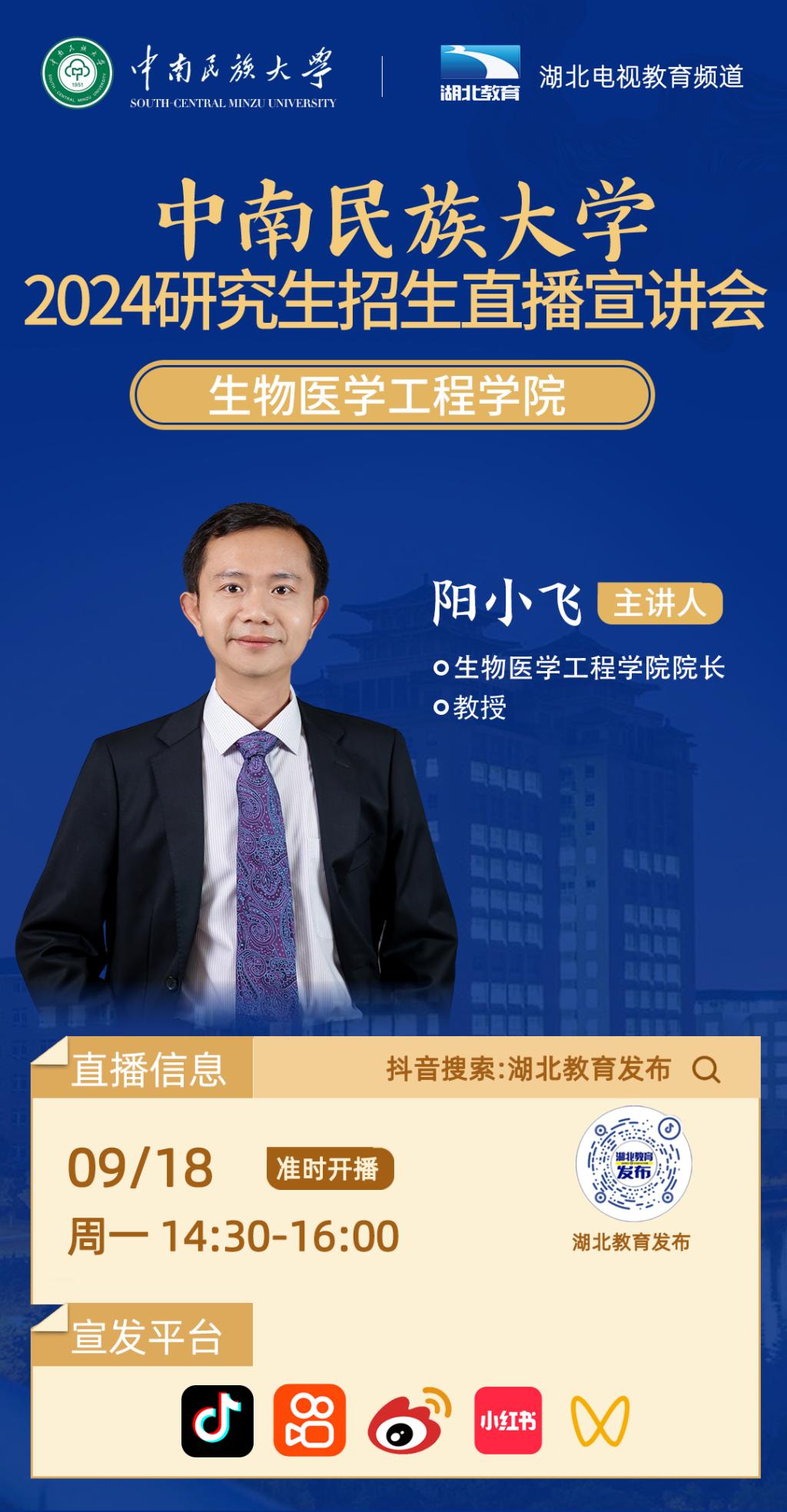 中南民族大學2024年研究生招生線上系列宣講會之四------生物醫學工程學院專場(9月18日 14:30)