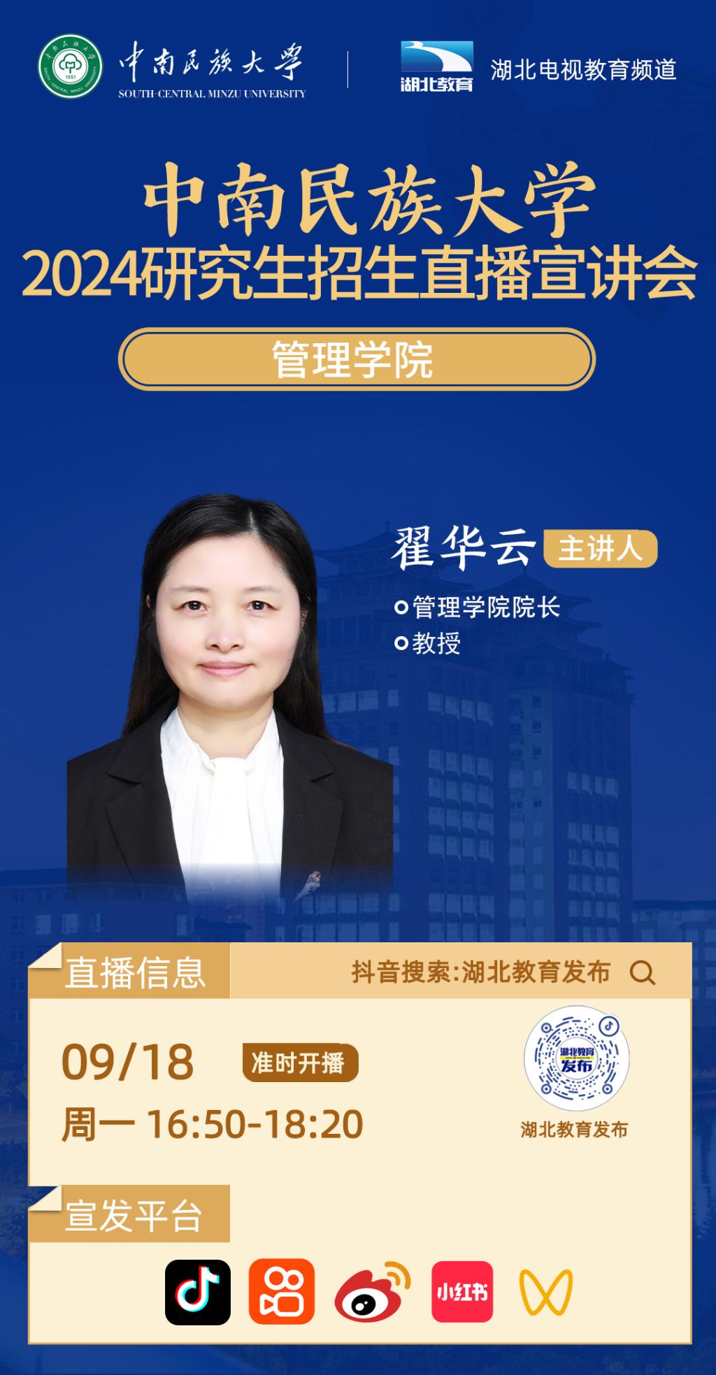 中南民族大學(xué)2024年研究生招生線上系列宣講會之五------管理學(xué)院專場(9月18日 16:50)