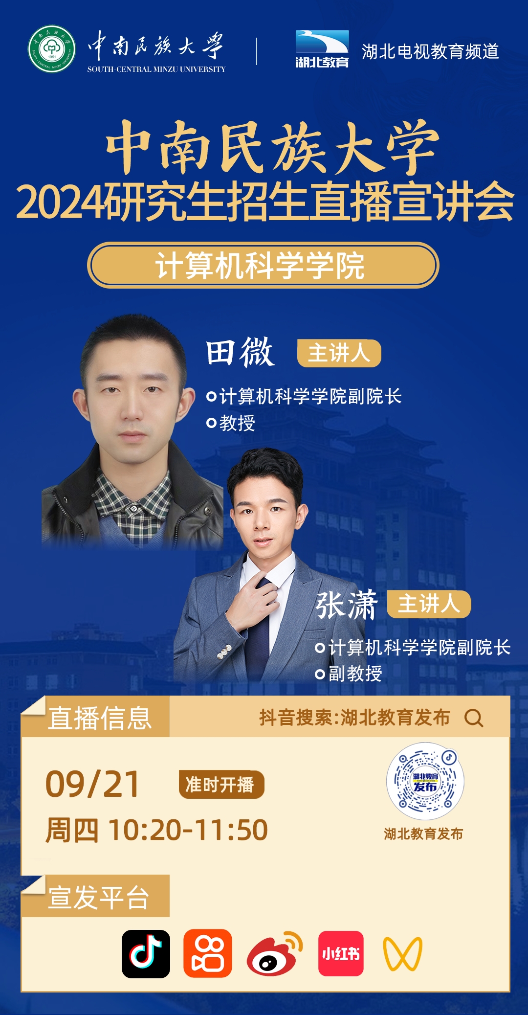 中南民族大學(xué)2024年研究生招生線上系列宣講會之九------計算機科學(xué)學(xué)院專場(9月21日 10:20)