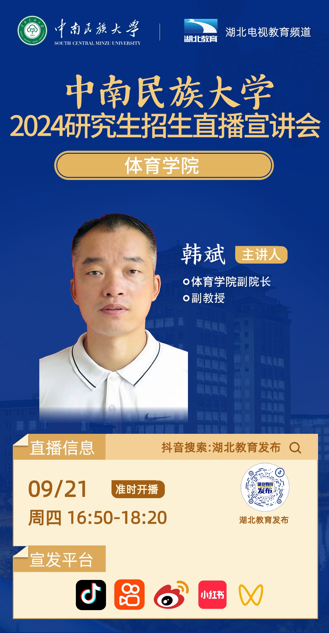 中南民族大學2024年研究生招生線上系列宣講會之十一------體育學院專場(9月21日 16:50)